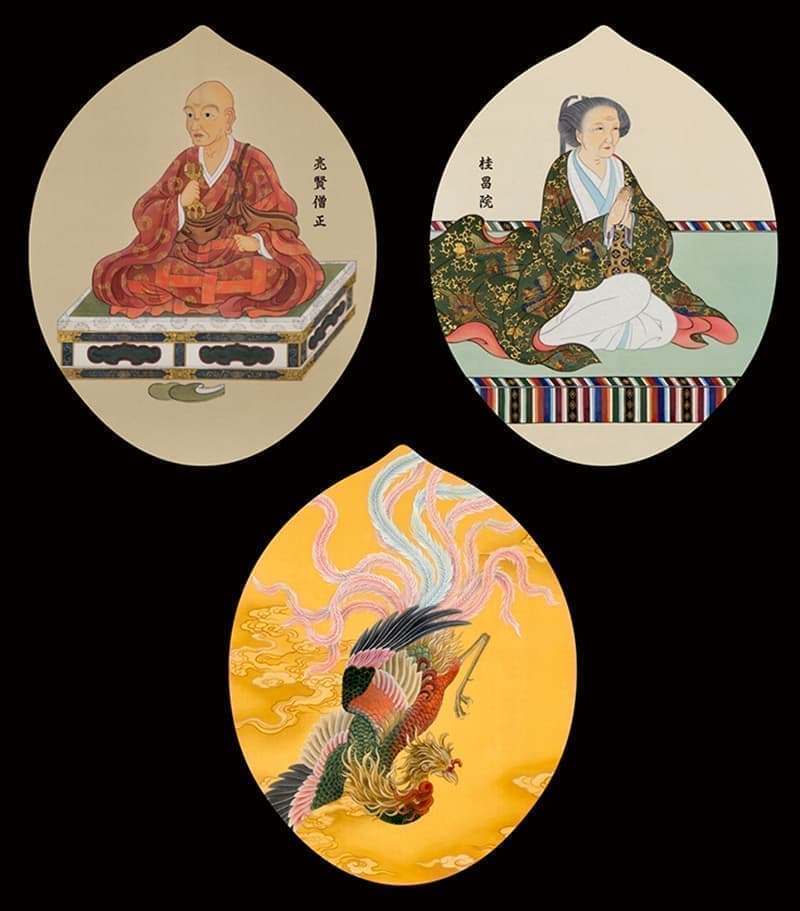 掛け軸等のお写真をお送りいただき、画像として散華にレイアウトいたしました。記念のお品物で大きめで厚めの用紙をご希望でしたので、弊社で一番幅のある散華型を使用し、220kgのしっかりとした用紙で散華作製をいたしました。