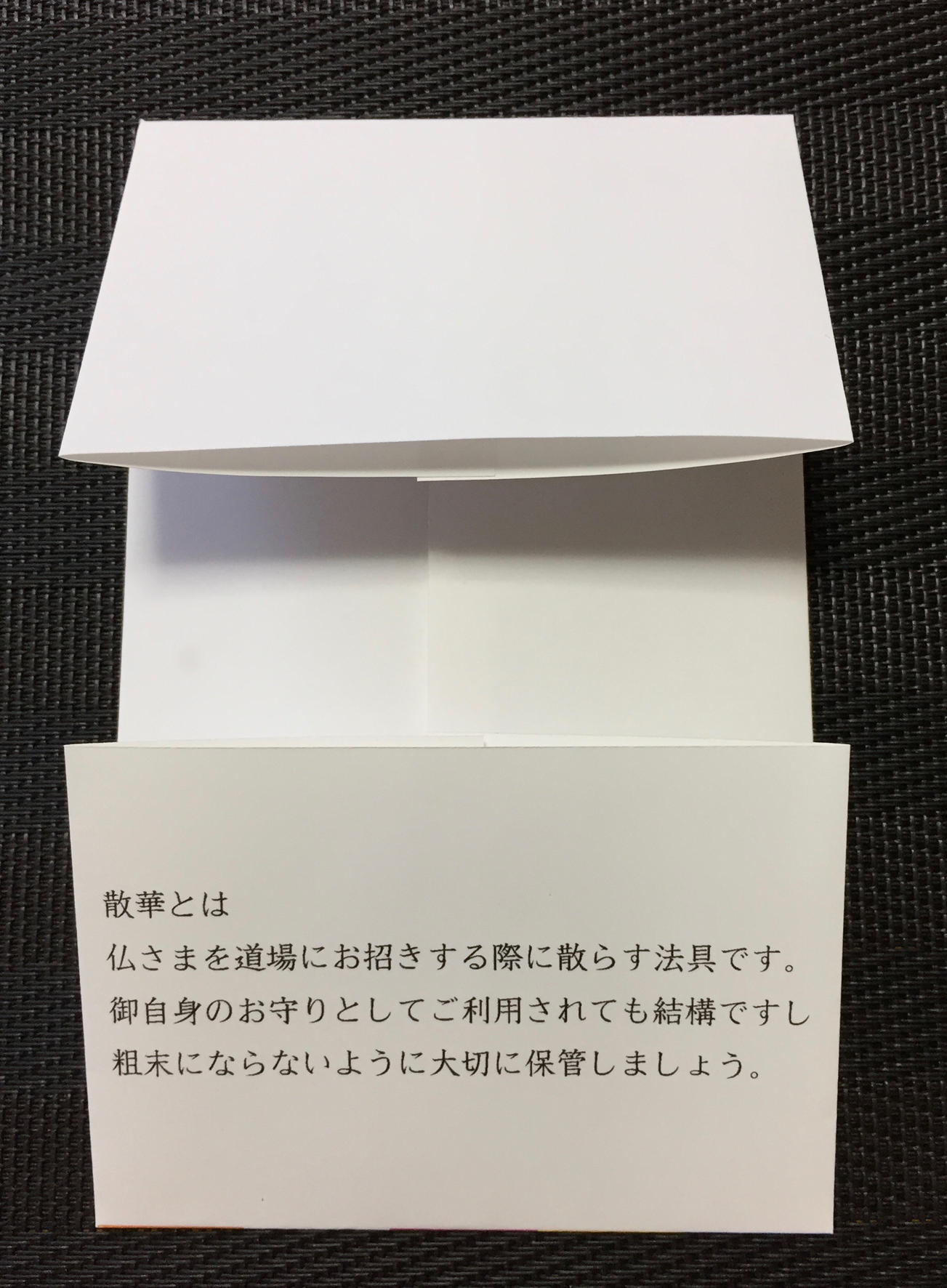 作製事例TOPに戻る オリジナル散華オーダーメイド散華 作製実績 9 栃木県曹洞宗栃木県宗務所様 HOME | 散華詳細 | 曹洞宗栃木県宗務所 栃木県 奉詠記念大会の記念品として 片面は金と銀のバック色が指定色、梅花流奉詠大会にあわせ梅の模様を入れる案件でした。もう片面は、絵師の描いた原画をスキャンし画像処理と加工の後散華用画像としました。 特色印刷も対応いたします 金・銀インキで印刷いたします 金銀のインキの印刷面は擦れや色の退色を防ぐため、表面を透明なPPフィルムで加工し散華を保護してあります。 たとう折りに包み納品 裏側には散華の解説を入れました 作製事例TOPに戻る 作製実績 1 作製実績 2 作製実績 3 作製実績 4 作製実績 5 作製実績 6 作製実績 7 作製実績 8 作製実績 9 作製実績 10 作製実績 11 作製実績 12 作製実績 13 作製実績 14 作製実績 15 作製実績16 作製実績17 作製実績18 作製実績19 作製実績20 作製実績21 作製実績22 作製実績23 作製実績24 Mail : info@140.co.jp ☎ : 03-3858-0027 FAX : 03-6277-0765 申し訳ございません、打ち合わせ中・商談中・プレス機械運用中は、お電話対応ができない場合があります。 メッセージをいただければ、折り返しご連絡申し上げます。 メールで問い合わせる