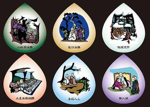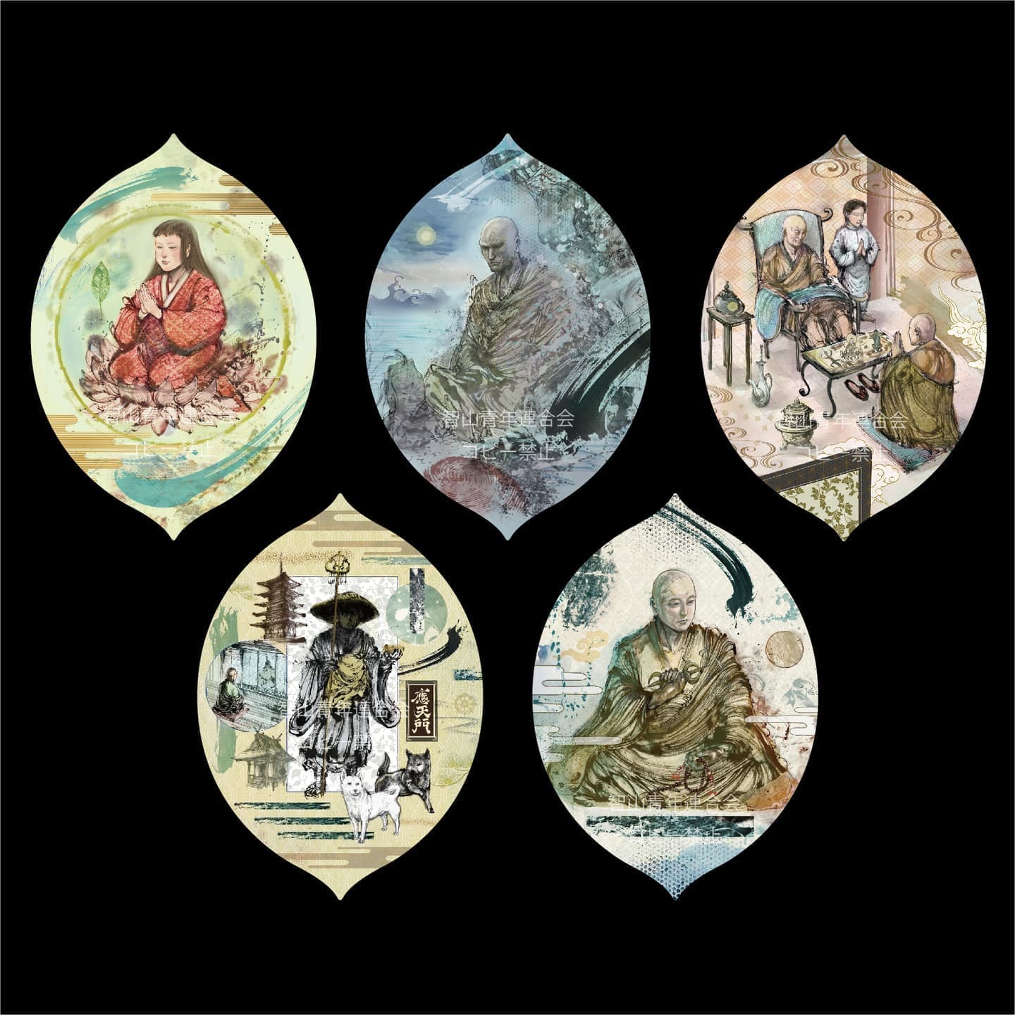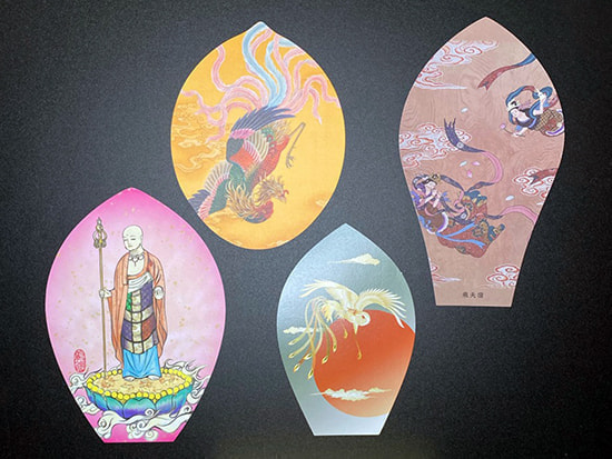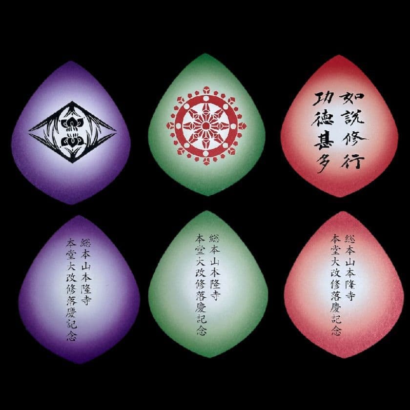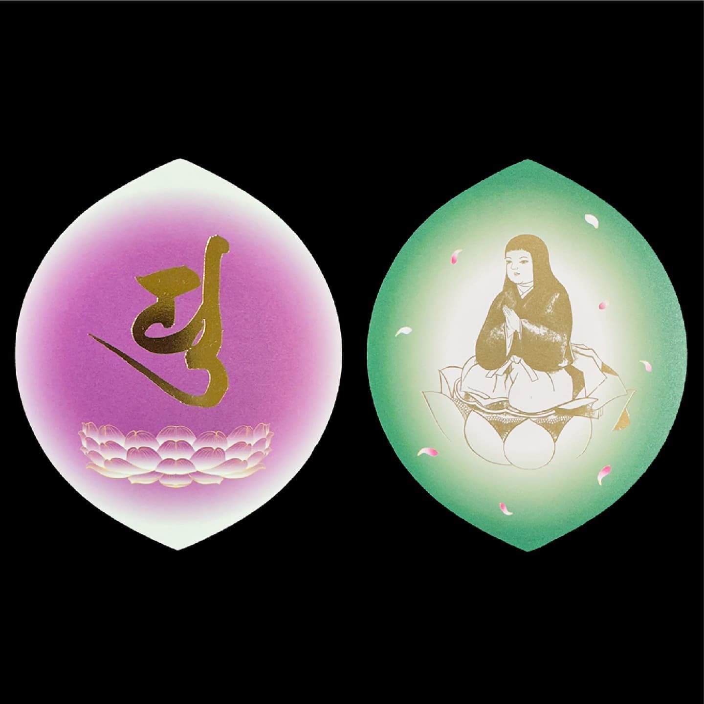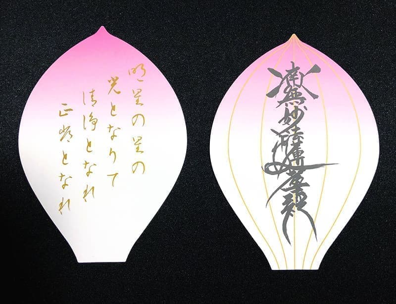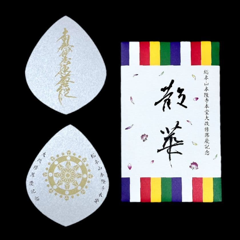 散華は5種類作製し、各1枚ずつ5枚1セットをたとう折り紙に包みご納品