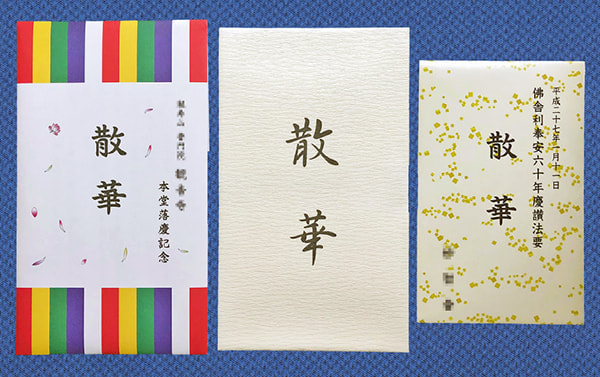 記念品や授与品等で何枚かの散華をお配りになるときなどには、散華を入れる袋や封筒、たとう折り包みをご用意いたします。