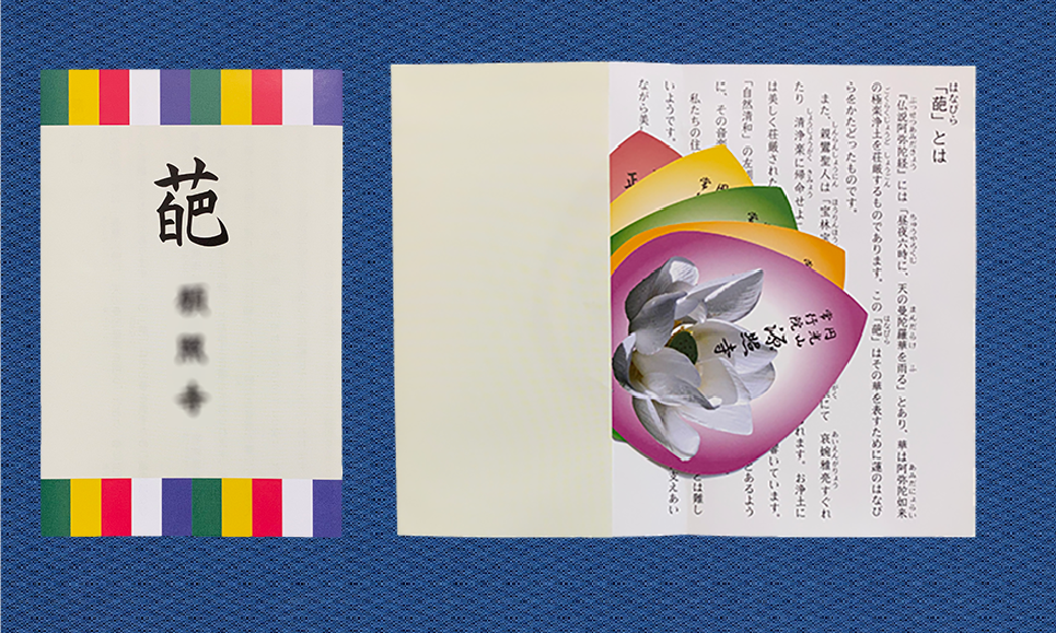 本堂壁面の「蓮」を撮影したとう折り表紙に
